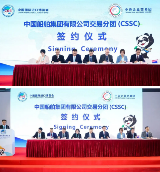 簽約儀式上,中國船舶集團所屬廣船國際股份有限公司、中船黃埔文沖船舶有限公司、滬東重機有限公司、陜西柴油機重工有限公司、中國船舶物資公司、中國船舶貿易有限公司、上海外高橋造船有限公司等7家企業與西門子、ABB、康士伯、瓦錫蘭、日本大發、韓國現代等19家合作商,共進行了23個項目簽約,簽約總金額共計1.14億美元,涉及軸帶發電機、主發電機、主柴油機、閥門遙控系統、柴油機零部件、曲軸等產品。另外,中國船舶集團參加本屆進博會專業觀眾觀展活動的人數也較往年有明顯提升。