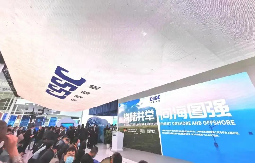 此次展會上,中國船舶集團以“創(chuàng)新引領(lǐng)、綠色發(fā)展強使命,海陸并舉、向海圖強顯擔(dān)當(dāng)”為主題,在900平方米的歷屆風(fēng)能展最大展臺上,按照建設(shè)開發(fā)、整機制造、關(guān)鍵核心部件和產(chǎn)業(yè)配套四個版塊分區(qū)展出。