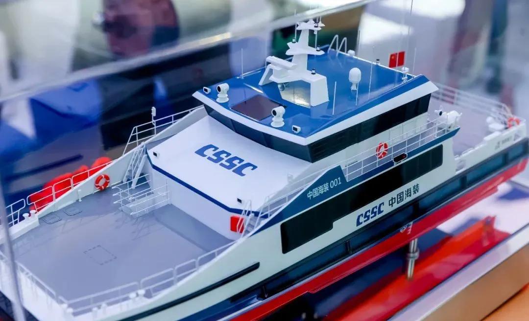 在風(fēng)能展上,中國海裝與遠舟科技聯(lián)合設(shè)計制造的國內(nèi)首艘30米級專業(yè)風(fēng)電運維船發(fā)布,最大裝載38噸,可抗浪高4米,可搭乘12名運維人員和6名船員,具有高強度、輕重量的結(jié)構(gòu)特點和優(yōu)良的安全性、快速性、防腐性、耐波性等,將于今年正式投運。