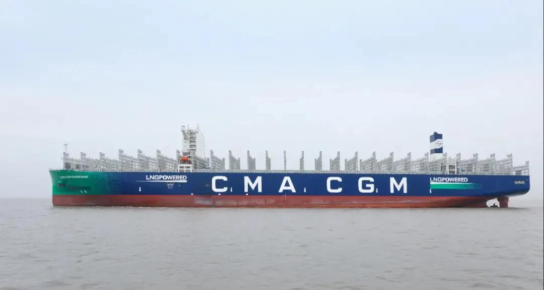 2021年6月29日,中國船舶集團自主研發設計建造的全球首創最大、最先進23000TEU雙燃料動力集裝箱船“達飛·索邦”號,在中國船舶集團旗下滬東中華命名,并交付給法國達飛海運集團。