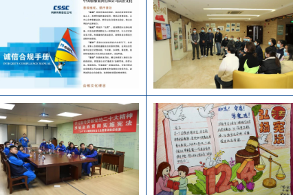 風帆公司、綜合院等單位發布合規手冊,組織簽署合規承諾和合規考試;中船澄西、投資公司、七一一所、七二六所等單位精心制作并設置憲法宣傳展板;江南造船、中船九院等單位開展憲法法律知識問答,實現以考促學;廣州公司持續開展“送法進校園”憲法宣傳活動,將法治學習延伸到所屬技校、幼兒園;七一〇所、七一五所等單位開展法律咨詢志愿服務活動,對外樹立良好的“法治形象”;駐香港企業中船資本、中船租賃大力宣傳憲法及香港基本法、香港國安法,提升員工憲法法治意識。