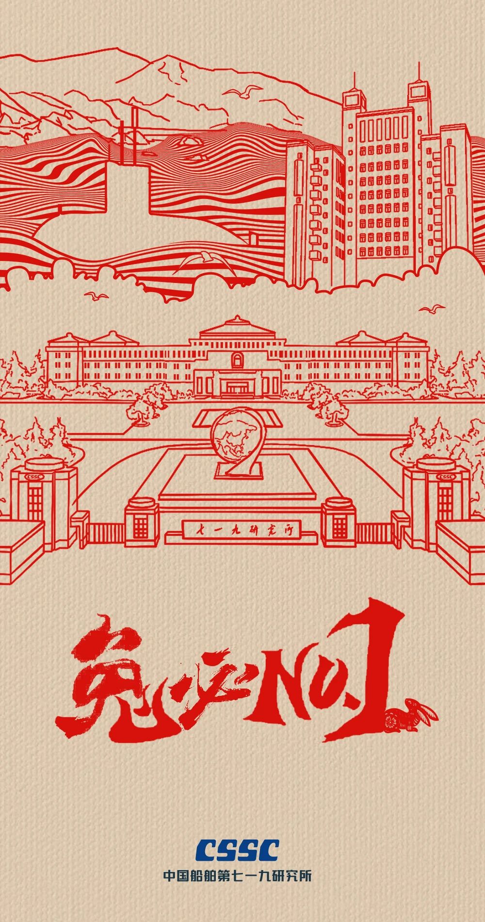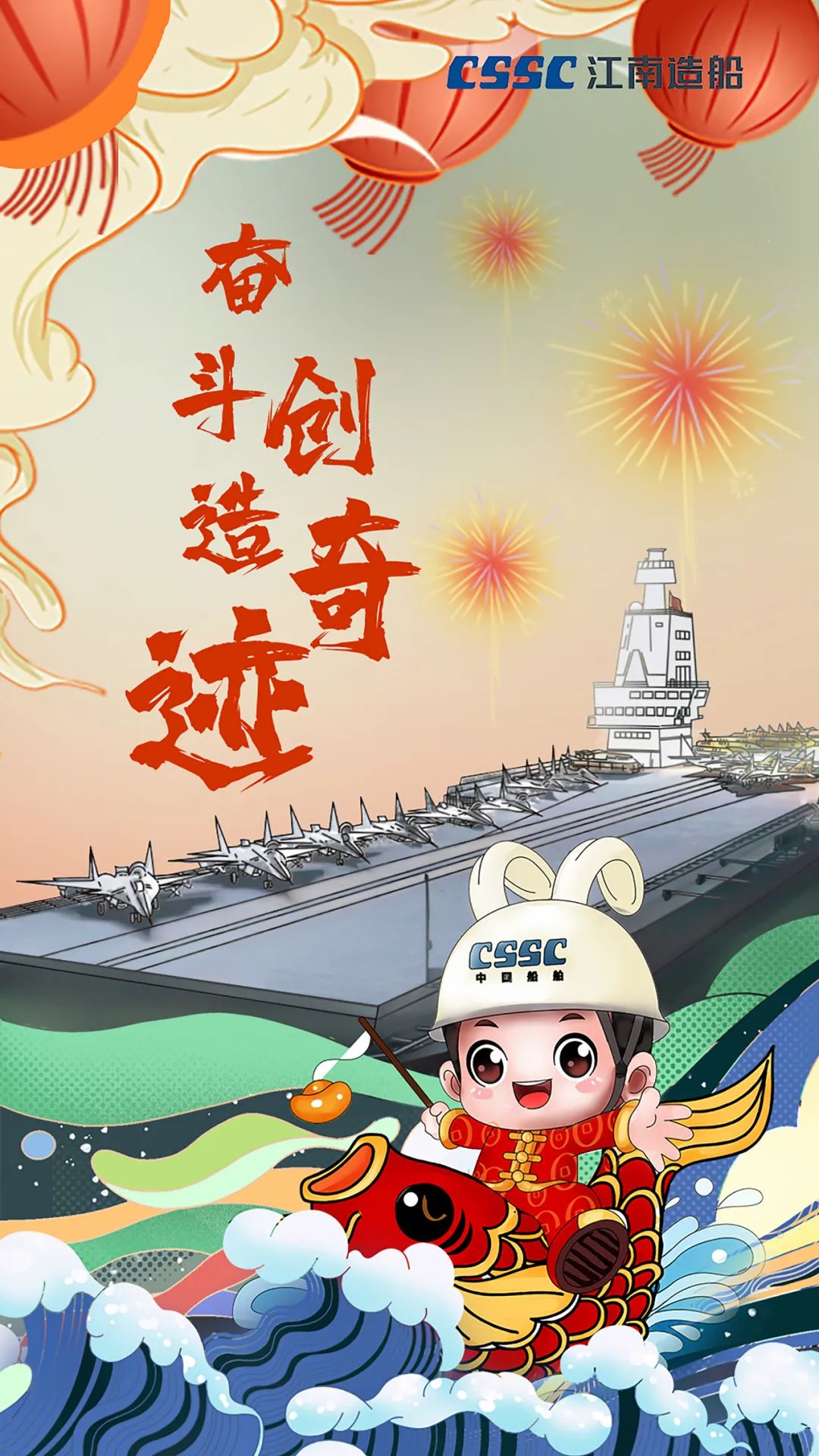 通過手繪藝術(shù)手法,將江南造船明星產(chǎn)品——福建艦和卡通形象——江小南融合在一起,長路漫漫,惟有奮斗!