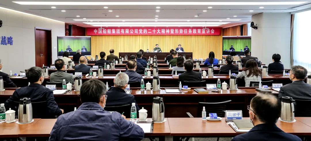 1月30日,中國船舶集團有限公司召開黨的二十大精神暨形勢任務教育宣講會,動員集團上下全面準確領會黨的二十大精神,深刻認識當前世界百年未有之大變局,更好把握當前國際國內形勢,進一步團結帶領廣大干部職工踔厲奮發、勇毅前行,加快推進世界一流船舶集團建設。中國船舶集團黨組副書記、總經理楊金成主持會議,黨組副書記、董事杜剛,黨組成員、副總經理孫偉,紀檢監察組組長、黨組成員李佳穎,黨組成員、總會計師賈海英,黨組成員、副總經理盛紀綱出席會議。會議邀請十三屆全國政協常委、提案委員會副主任,中央軍委聯合參謀部原上將副總參謀長戚建國作宣講報告。