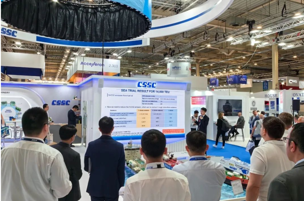 展會期間促成集團公司多家成員單位船海項目成功簽約,共計超50億元人民幣,包括中船貿易、廣船國際與EPS公司4艘11萬噸LRII型LNG雙燃料油輪項目簽約、與ASP公司2艘5萬噸MR甲醇雙燃料油輪項目簽約,中船貿易、大連造船與CAPITAL公司2艘30萬噸VLCC建造項目簽約,另外還簽訂了40多億元新造船項目意向書;同時,參展成員單位在集團公司展臺上開展了豐富的推介活動,包括江南造船“綠色船型家族”產品推介會、中船系統院“羅經進入光纖時代”產品推介會、七一一所“全球首個全流程船用碳捕捉系統案例分享會”,吸引了眾多國際船東、船級社和設備廠商前來觀摩,并共同探討未來合作機遇。
