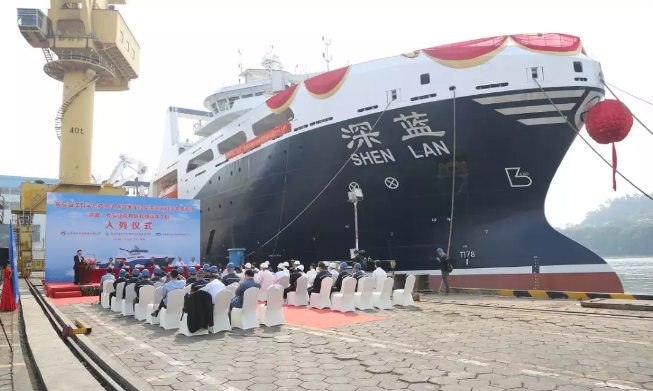 ????11月24日,青島海洋科學(xué)與技術(shù)試點國家海洋實驗室(以下簡稱“海洋試點國家實驗室”)在黃埔文沖船舶有限公司舉行了我國首艘漁業(yè)捕撈加工一體船“深藍(lán)號”入列國家海洋實驗室遠(yuǎn)海科學(xué)考察船隊儀式。