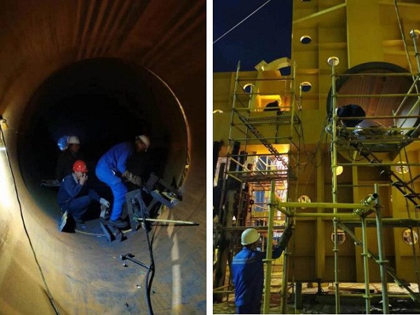 ????趕節(jié)點(diǎn)期間,項(xiàng)目團(tuán)隊(duì)主動(dòng)放棄節(jié)假日休息,每天通宵輪流作業(yè)。一線工班和施工隊(duì)人員更是不論白天黑夜,持續(xù)做好吊裝分段,合攏口裝配焊接等工作,為項(xiàng)目開展不斷奮戰(zhàn)。