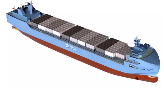 智慧航海(青島)科技公司的300TEU(國際標準集裝箱)智能集裝箱船“智飛”號