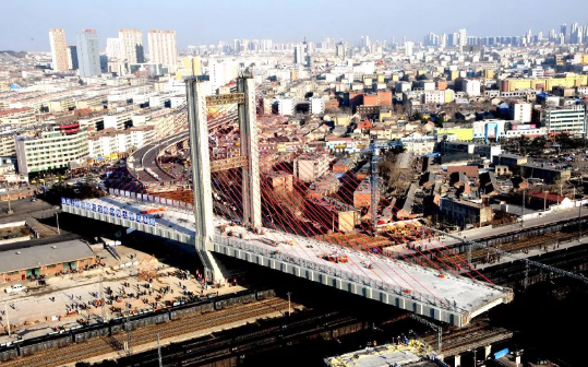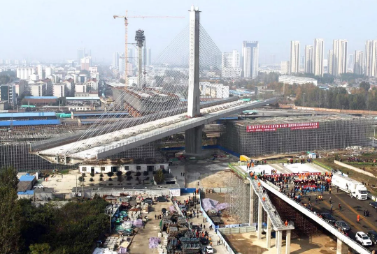 ▲2014年,完成姑嫂樹特大橋175000千牛亞洲之最的球鉸設(shè)計制造。武漢姑嫂樹立交橋在京廣線頭頂完成“空中轉(zhuǎn)體”,下方的京廣高鐵全程保持暢通。姑嫂樹立交橋國內(nèi)首次在墩頂上進(jìn)行大噸位混凝土箱梁轉(zhuǎn)體施工,單個轉(zhuǎn)體重量創(chuàng)下亞洲之最、世界第二。