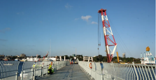 日前,中國船舶集團(tuán)旗下中船應(yīng)急承建的肯尼亞蒙巴薩人行浮橋正式建成通行。蒙巴薩作為肯尼亞第二大城市,是全國重要工商業(yè)中心,其港口為非洲東海岸最大海港。浮橋的建成,使蒙巴薩主島和周邊地區(qū)兩岸居民通行時(shí)間由原來的45分鐘縮短至10分鐘,極大方便了當(dāng)?shù)鼐用癯鲂小M瑫r(shí),浮橋通航孔的設(shè)計(jì)可滿足萬噸大型船舶暢通進(jìn)出蒙巴薩港口。