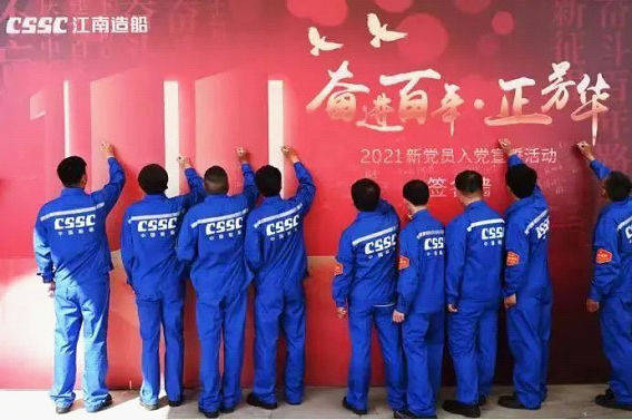 在慶祝中國(guó)共產(chǎn)黨成立100周年之際,100名來(lái)自中國(guó)船舶集團(tuán)的產(chǎn)業(yè)工人新黨員在江南造船博物館集中進(jìn)行了入黨宣誓。