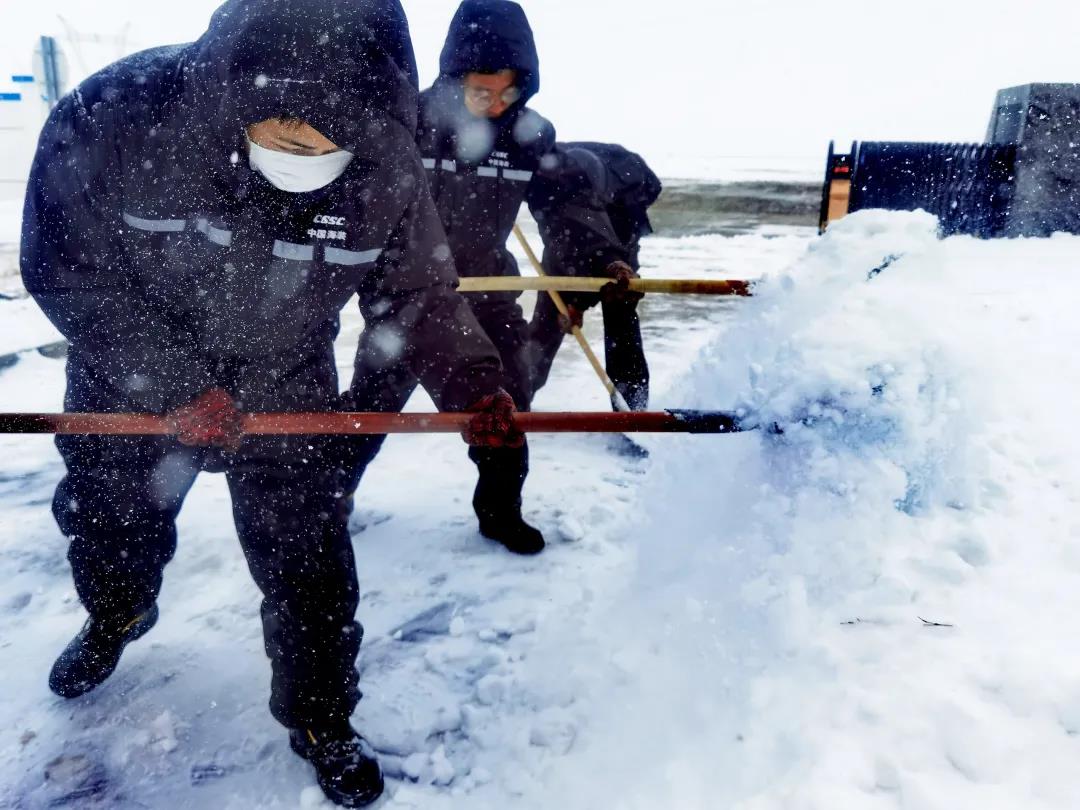 進(jìn)入11月,內(nèi)蒙古自治區(qū)錫林郭勒盟地區(qū)迎來(lái)大面積的暴風(fēng)雪,烏達(dá)萊項(xiàng)目人員在趕往風(fēng)場(chǎng)的路上遭遇積雪路段,雖然氣候嚴(yán)寒,但為了及時(shí)消除機(jī)組故障,大家在積雪路段采取挖雪推車(chē)的方式齊心協(xié)力,一同開(kāi)展清理路面積雪的行動(dòng)。這個(gè)冬日,冰雪阻擋不住海裝追風(fēng)者們勇往直前的步伐,他們只為恪盡職守完成一個(gè)承諾——風(fēng)機(jī)旋轉(zhuǎn)、帶來(lái)光熱。
