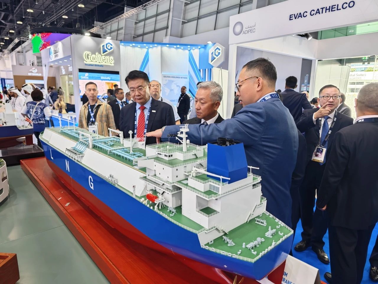 在此次展會上,江南造船展出了自主研發(fā)設(shè)計的17.5萬立方米液化天然氣(LNG)運輸船、目前世界上最大艙容的99000立方米超大型乙烷運輸船(VLEC)以及93000立方米超大型液氨運輸船(VLAC)等船型,憑借自身優(yōu)勢及特色展臺布置吸引了眾多油氣公司、船東、船級社、中間商、船廠、供應(yīng)商等駐足觀看,同時也與其進行了廣泛和深入的交流。值得一提的是,中國駐阿聯(lián)酋大使一行也到訪江南造船展臺,詳細詢問江南造船的產(chǎn)品特點、技術(shù)和建造優(yōu)勢。