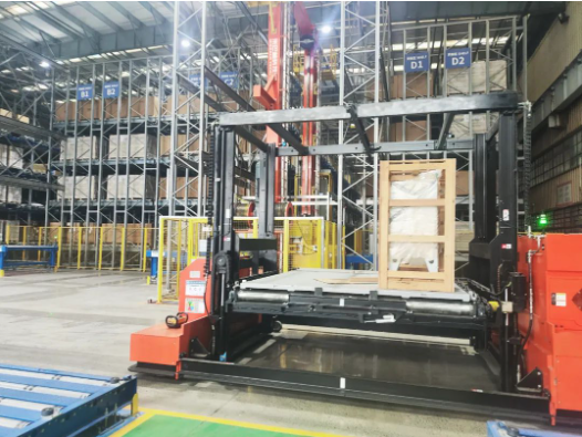 該系統單托盤舉升能力達到6噸,適用于各類大、重、分布不均、形狀各異物資的立體存儲。采用業內首創的駛入式自動導向車作為移載動力,通過自主研發的重型堆垛裝備與智能控制系統聯動,能夠在復雜的立體倉庫環境中準確定位目標并快速平穩完成作業任務。同時,通過引入現代物聯網和數字孿生等先進技術,實現了倉儲物流的智能可視化運營。