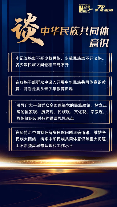 他要求廣大黨員、干部在堅持走中國特色解決民族問題正確道路、維護各民族大團結(jié)、鑄牢中華民族共同體意識等重大問題上不斷提高思想認識和工作水平。