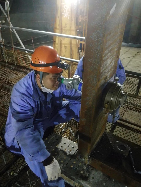 為確保VLCC照光工作順利完成,大船集團輪機工藝小組,提前一周就進入“作戰(zhàn)”狀態(tài),他們每天堅持深入現(xiàn)場,從細小處入手,檢查每一個可能影響軸舵系施工質量的隱患,加班加點成了工作的常態(tài)。