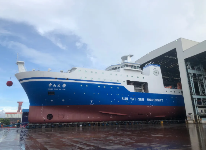 8月28日,中國船舶集團七〇八所設計、江南造船建造的我國最大海洋綜合科考實習船“中山大學”號在上海命名下水?!爸猩酱髮W”號總長114.3米,型寬19.4米,型深9.25米,吃水6米。該船具備無限航區全球航行能力,經濟航速11.5節,最大試航速度16節,經濟航速下續航能力15000海里,額定人員編制下自持力60天,定員100人。