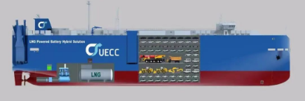 3600車汽車運輸船是江南造船建造采用浮船塢下水的全球第一批“LNG雙燃料+電池混合動力+智慧能源管理系統”的汽車運輸船。該型船涵蓋如雙燃料+電池混合動力及EMS能源管控系統等世界一流的所有滾裝船技術和系統。