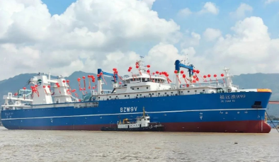 南極磷蝦捕撈加工船“福遠漁9199”排水量約19000噸,是國內最大一艘連續真空泵吸的捕撈及加工一體化漁船,也是我國首批自主研發的專業型南極磷蝦捕撈加工船,主要性能指標處于世界同類船舶領先水平,投入使用后將顯著提升我國在南極作業水域的捕撈加工能力,為我國“藍色糧倉”建設再添重器。