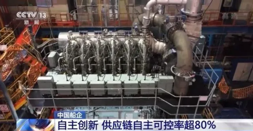 中國船舶集團旗下中船動力研究院技術專家 劉博:這臺CX40DF將匹配自主研制的增壓器、電控系統、油霧探測器,自主配套率將由過去的60%提升至80%。