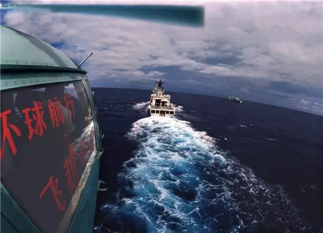 ▲艦載直升機(jī)飛越大西洋赤道