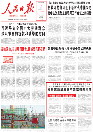 人民日?qǐng)?bào)2023年5月1日頭版刊發(fā)《中管企業(yè)、中管金融企業(yè)扎實(shí)開展學(xué)習(xí)貫徹習(xí)近平新時(shí)代中國特色社會(huì)主義思想主題教育——推動(dòng)高質(zhì)量發(fā)展不斷取得新成效(學(xué)思想 強(qiáng)黨性 重實(shí)踐 建新功)》。文中提到: