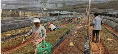 在這充滿希望的季節(jié)里,鶴慶縣六合鄉(xiāng)松坪村羊肚菌種植基地一壟壟羊肚菌破土而出,頭戴獨(dú)特的褐色“網(wǎng)格帽”,在陽(yáng)光下閃爍著光芒,為松坪村繪就一幅生機(jī)勃勃的致富畫(huà)卷。